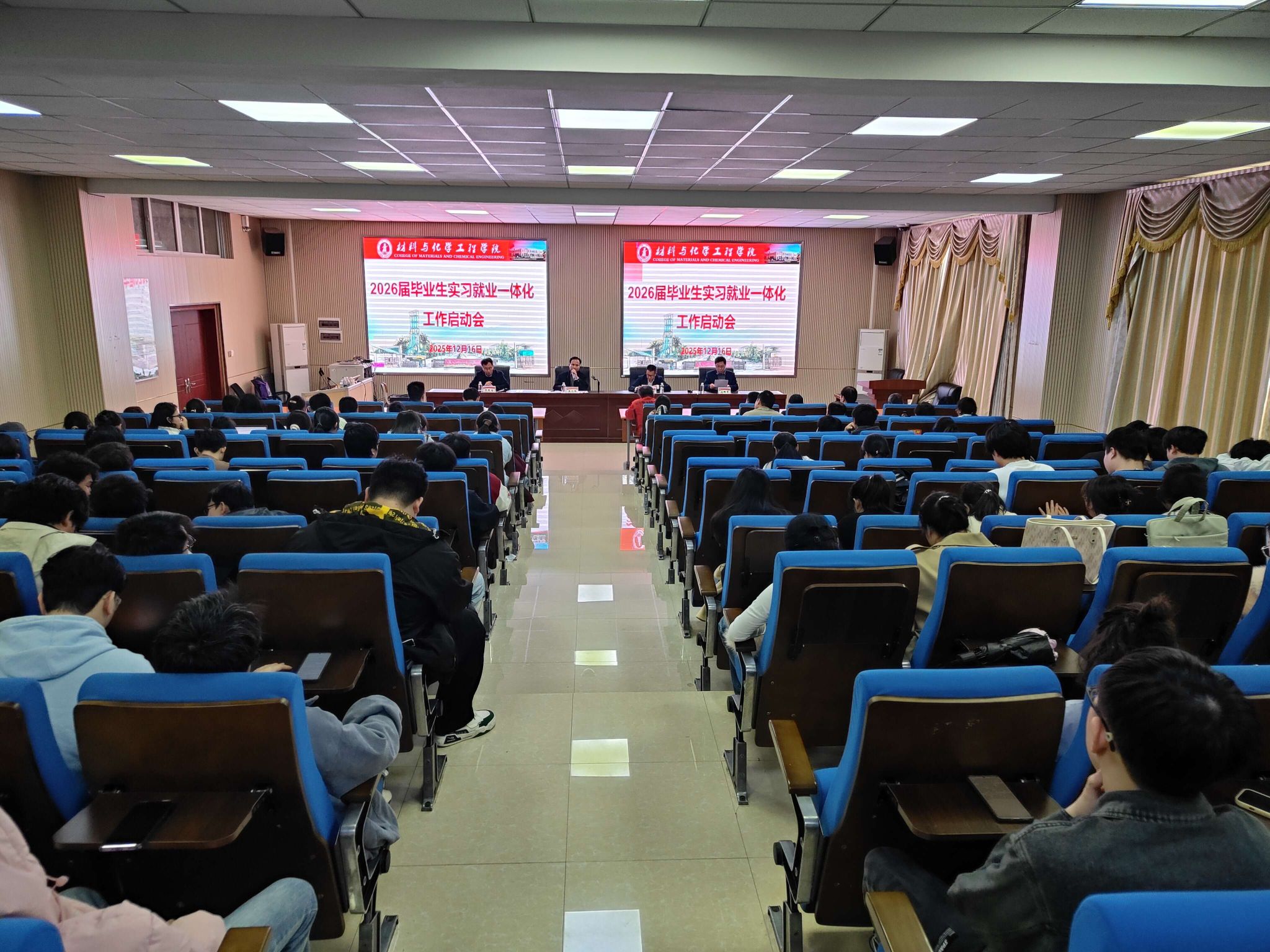为全面贯彻落实毕业生就业工作决策部署,深化实习与就业有机衔接,构建“实习促就业、就业强实习”的良性循环机制。12月16日,材料与化学工程学院实习就业一体化工作启动会在逸夫楼111报告厅顺利召开。学院领导班子成员、各教研室主任和指导老师、毕业班班主任、辅导员、2026届全体毕业生参会,会议由学院院长陈珍明主持。