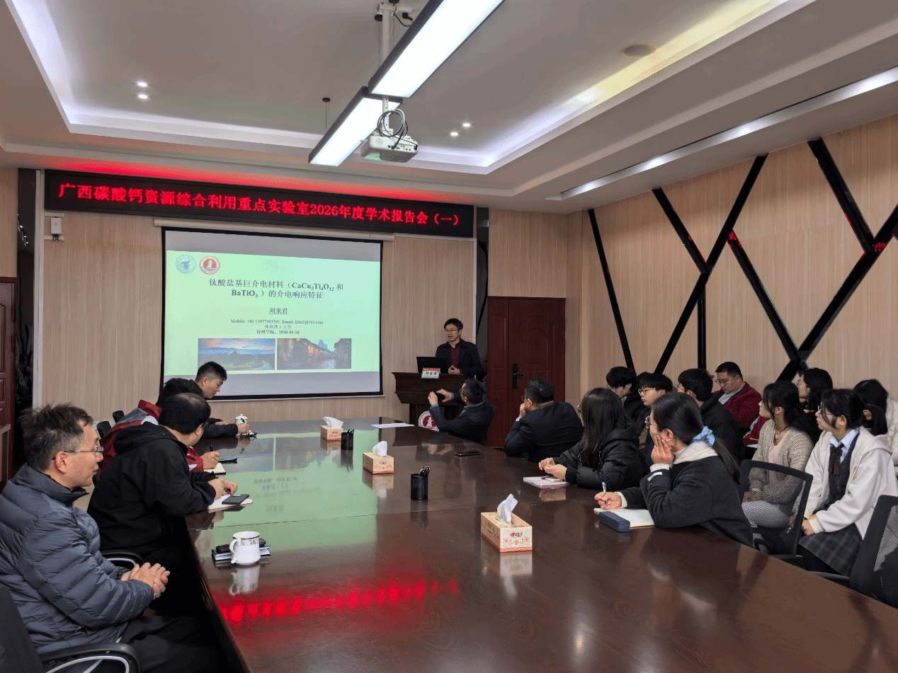 为搭建碳酸钙资源综合利用领域的学术交流平台,推动关键技术创新与产业高质量发展,近日,我院举办的广西碳酸钙资源综合利用重点实验室 2026年度系列学术报告在求真楼二楼220会议室召开。本次学术报告由陈珍明院长主持,学院全体教师和全体研究生共同参加。