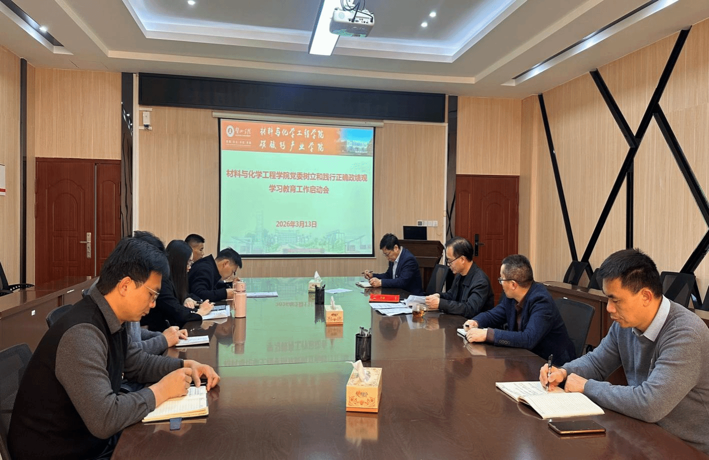 3月13日上午,材料与化学工程学院党委在求真楼220会议室召开党委(扩大)会,传达学习习近平总书记关于树立和践行正确政绩观的重要论述和关于学习教育的重要讲话精神,传达学习党中央、自治区党委和学校党委关于学习教育的相关会议精神,部署启动学院树立和践行正确政绩观学习教育工作。会议由学院党委书记莫达隆主持。